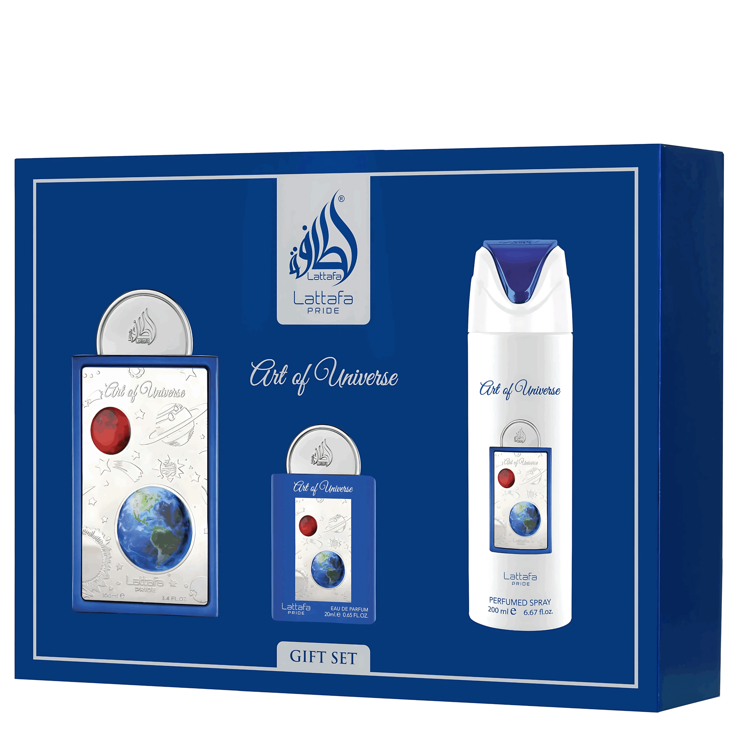 Art Of Universe Gift Set by Lattafa Pride is a Citrus Aromatic fragrance for women and men. This scent is for confident people who want a scent that makes people notice them without them having to do anything. This smell is made for the modern guy who lives with energy and grace. This Arabian perfume gift set gives every spritz a touch of class and adaptability, whether you are giving it as a present or adding to your own collection.